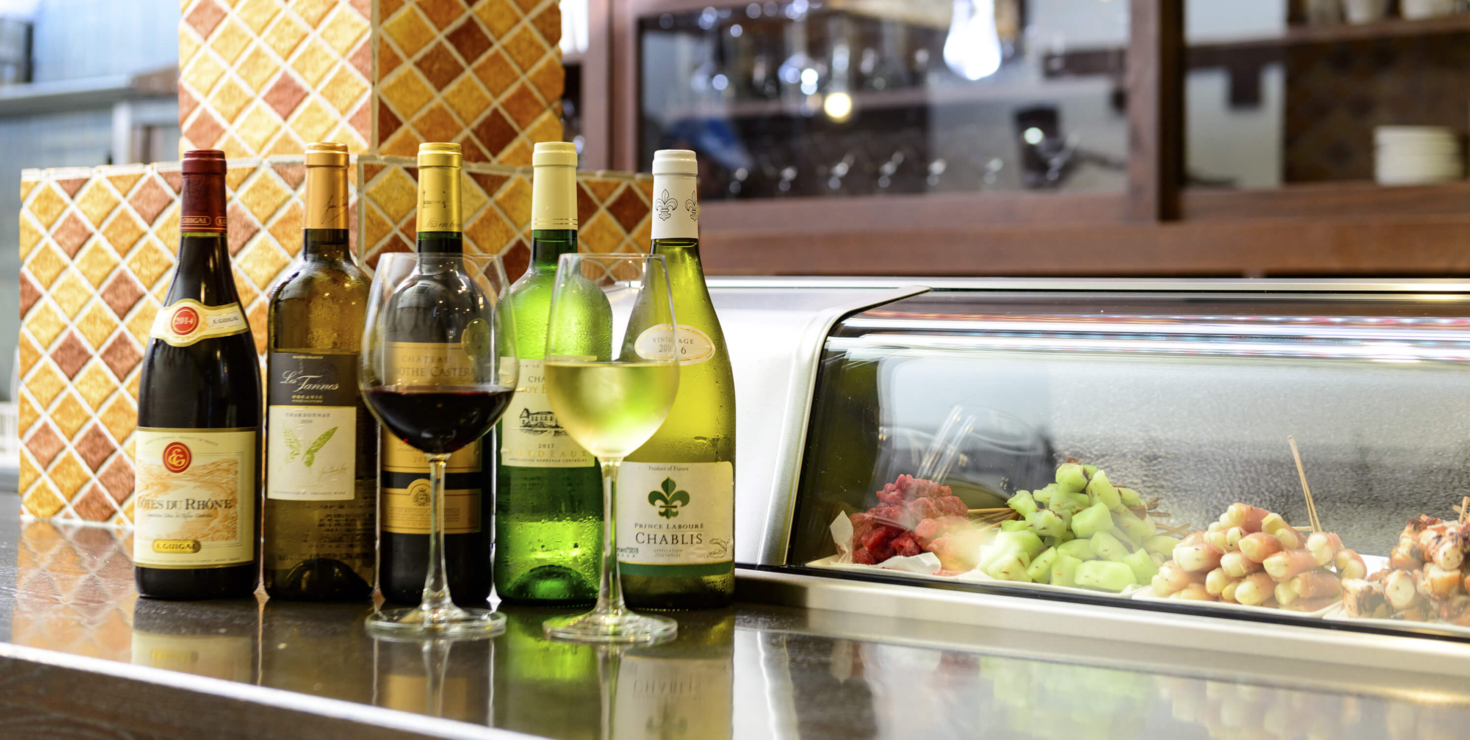 フランスワインをはじめイタリア、国産、ニューワールドワインを約白25種、赤25種の幅広くご用意しております。